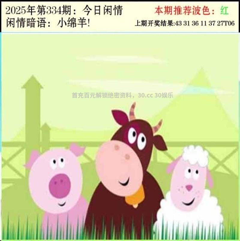 334期今日闲情暗语:小绵羊 解释:小绵羊,图解马猴鸡鼠狗羊兔 综合特肖:马猴鸡鼠狗羊兔 综合主肖:马猴鸡鼠